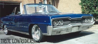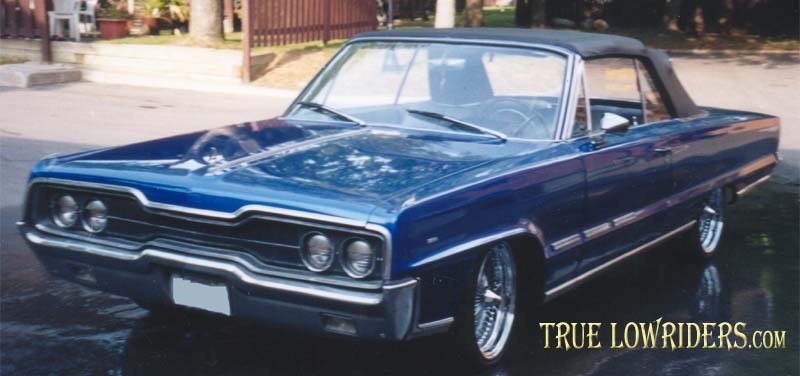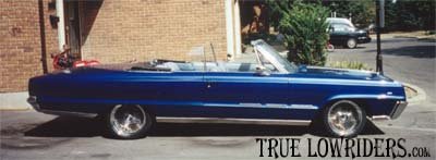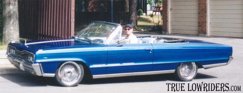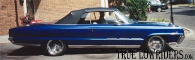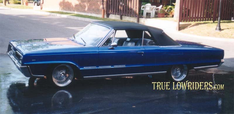 The car had a complete body overhaul, brand new top installed, and the interior freshened up. I sealed it all up with some sweet shiney blue paint job. Ohhh yeah, I almost forgot, it sits pretty on top of some 18" 100 spoke chromies.